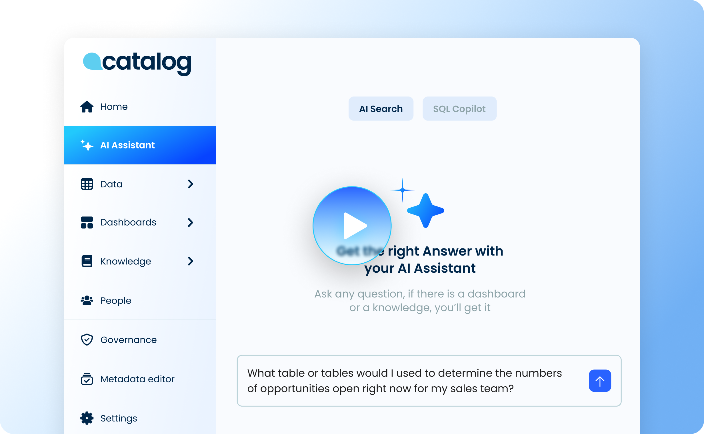 Easily search and locate data assets—from domains to dashboards, tables, and columns—at lightning speed with AI assistance and natural language search.